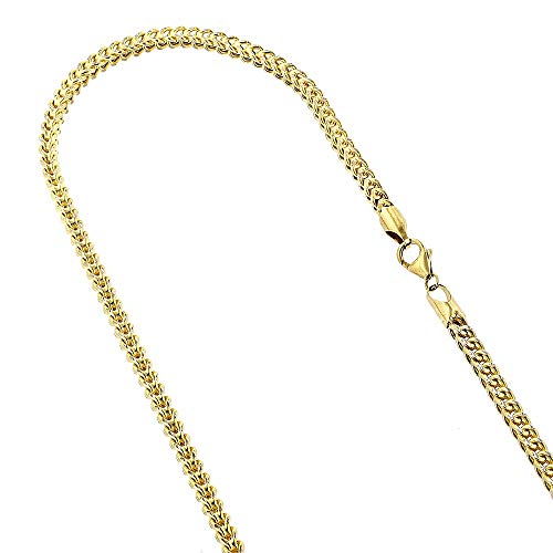 14K REAL Yellow Gold 4.00mm Shiny SOLID Diamond-Cut Round Franco Chain Necklace Or Bracelet for Pendants and Charms with Lobster-Claw Clasp (8.75″, 24″ 26″ or 30 inch) Mens Womens Jewelry and Chains