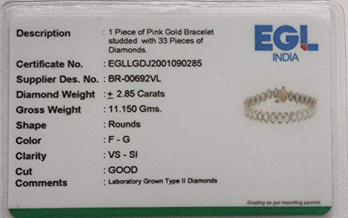 3 Carat Certified Lab Grown Diamond Tennis Bracelet for Women 7.5 Inches (GH,SI)14K Rose Gold Diamond Bracelet Diamond Jewelry Gifts